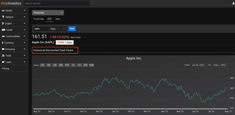 Discounted cash flow (DCF) is a valuation method used to estimate the value of an investment based on its expected future cash flows. DCF analysis attempts to figure out the value of an investment today, based on projections of how much money it will generate in the future. This applies to the decisions of investors in companies or securities, such as acquiring a company or buying a stock, and for business owners and managers looking to make capital budgeting or operating expenditures decisions. We've added a new app called 'DCF' which will allow our users to view;