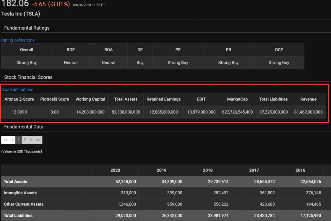 In our fundamental data coverage, we've enhanced our 'Fundamental' app to also display the following new financial scoring numbers along with key indicators i.e.